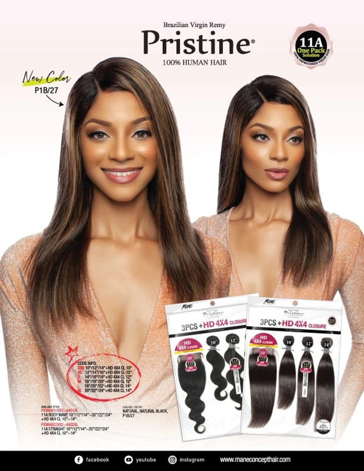 MANE CONCEPT 11A 3 Bundles + HD Lace 4×4 Closure – Body Wave (P1B/27)